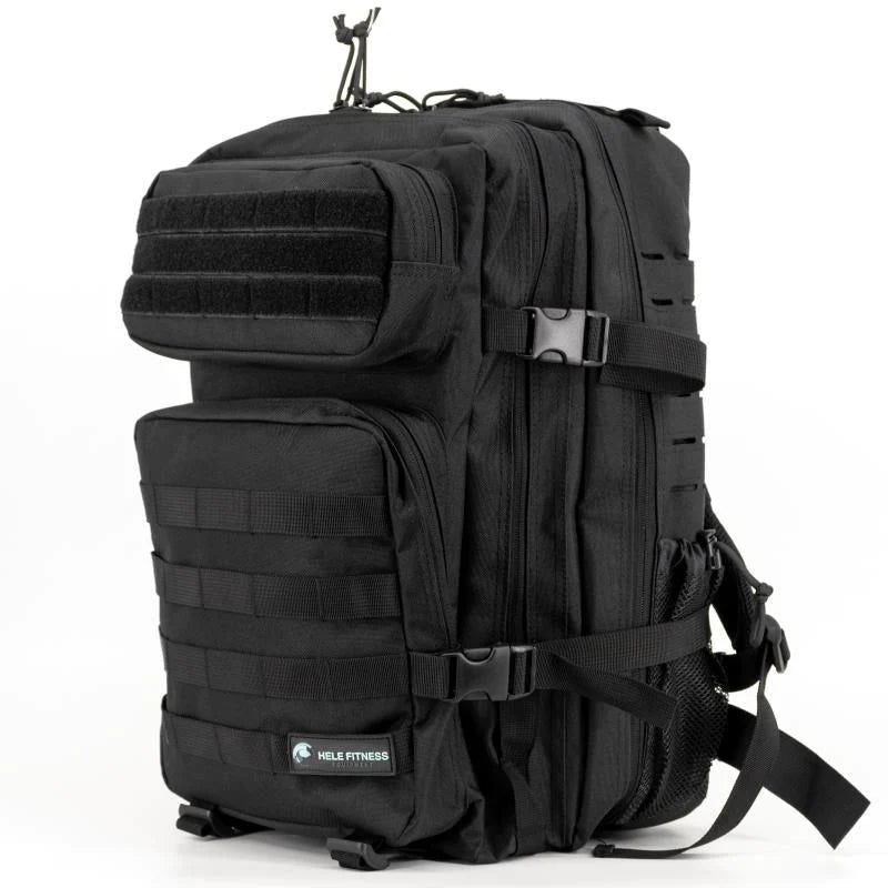 This 45L backpack is made with 600D Oxford material.  That means it's durable, water resistant, and can handle almost anything you throw at it.  The backpack has multiple compartments that can easily fit a bunch of books and a 17" laptop, or a few pairs of shoes plus a gym towel or two.  With many different straps to adjust, you can fit this backpack perfectly for your individual needs!